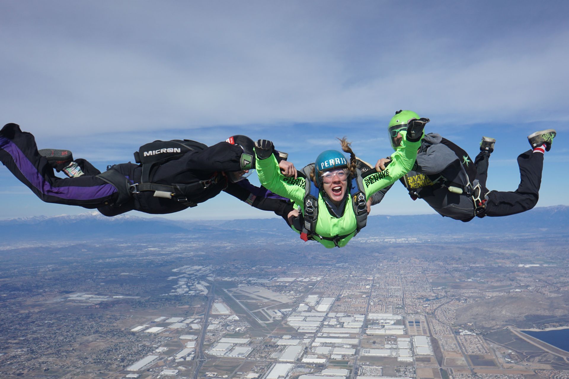 So: Skydivers train, and we compete. Especially at a big, thriving dropzone like Perris, we enjoy a smorgasbord of different events, skills camps, and workshops that draw people from around the world. These are often taught by skydivers who are famous in the community for their accomplishments. Once we’ve honed our chops, we start to perform in local competitions. People who have worked tirelessly to optimize their performance in one (or two!) of these disciplines are given the opportunity to compete on the national and even international level.