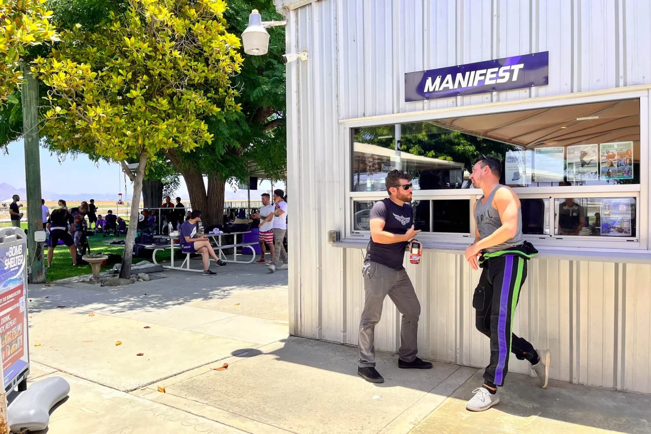 First time in Perridise? Head to Manifest, where our awesome team will walk you through the waiver and orientation process, show you how to add money to your jump account, tell you where to find packers, coaches, and Load Organizers, and get you in the air ASAP!
