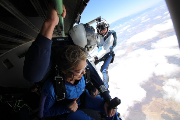 You see: From the open door of an aircraft cruising along at 12,500’ above the Southern California skies, the landscape below looks pivotally different than it does from that aforementioned bridge or cliff or building. In actual fact, it looks much like a Google Earth map. Since it’s the sense of depth that triggers acrophobia, and depth doesn’t exist from that angle, your fear of heights is going to remain essentially untriggered.