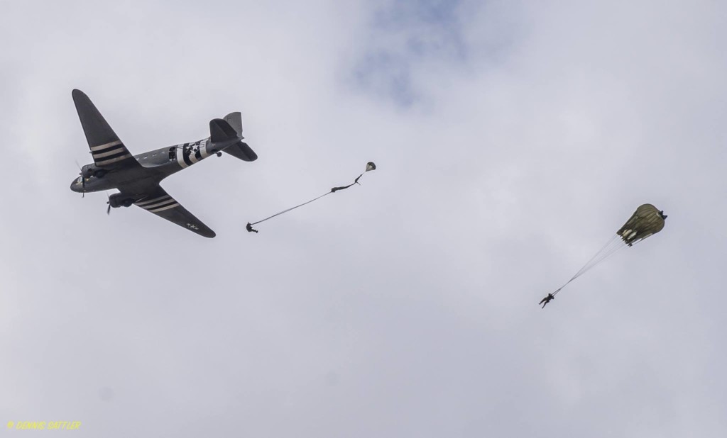 We hold 3 jump schools in April, July and October at FAAF in Frederick OK each year. Here students are immersed in WWII Paratrooper training over nine days culminating hopefully with 5 jumps from a C-47 and having their jump wings pinned on them by a WWII Veteran. These are not fantasy camps they are the real deal and life changing experience for all students who graduate. We also perform demonstration jumps at air shows across the country and in Europe. We also attend veteran functions in our home towns across the country and always look for opportunities to further our mission to “Remember, Honor & Serve”.