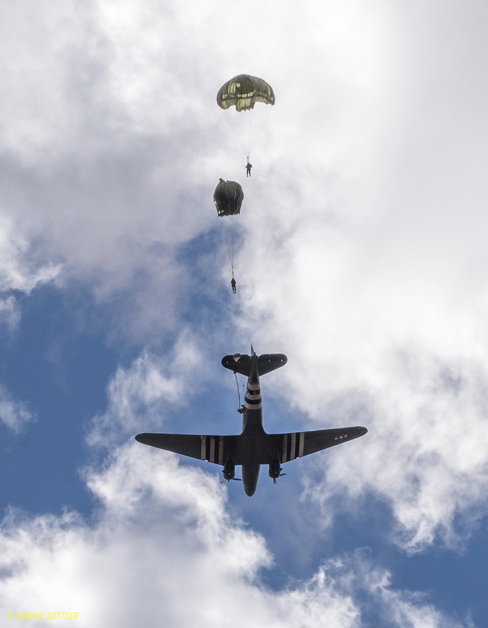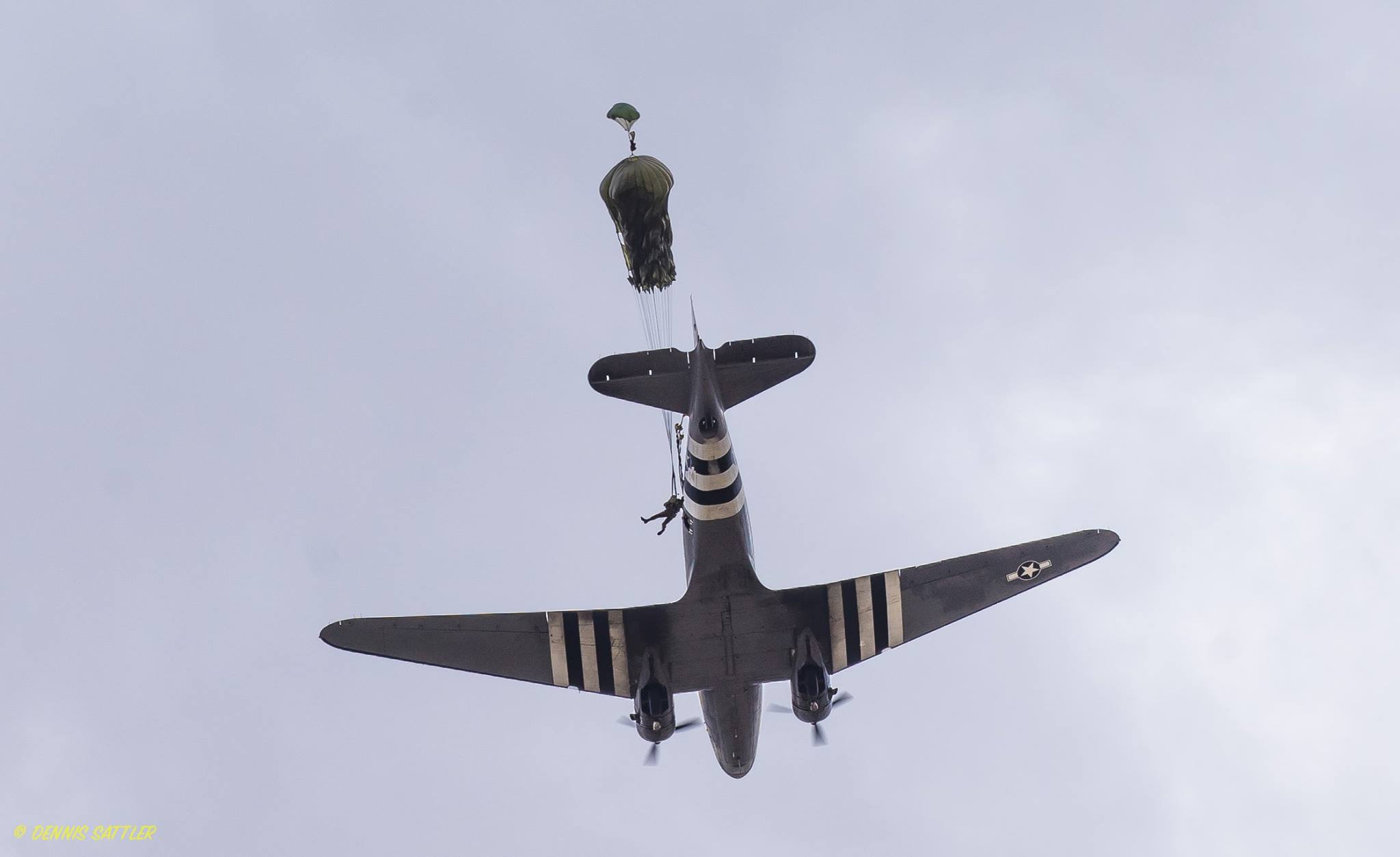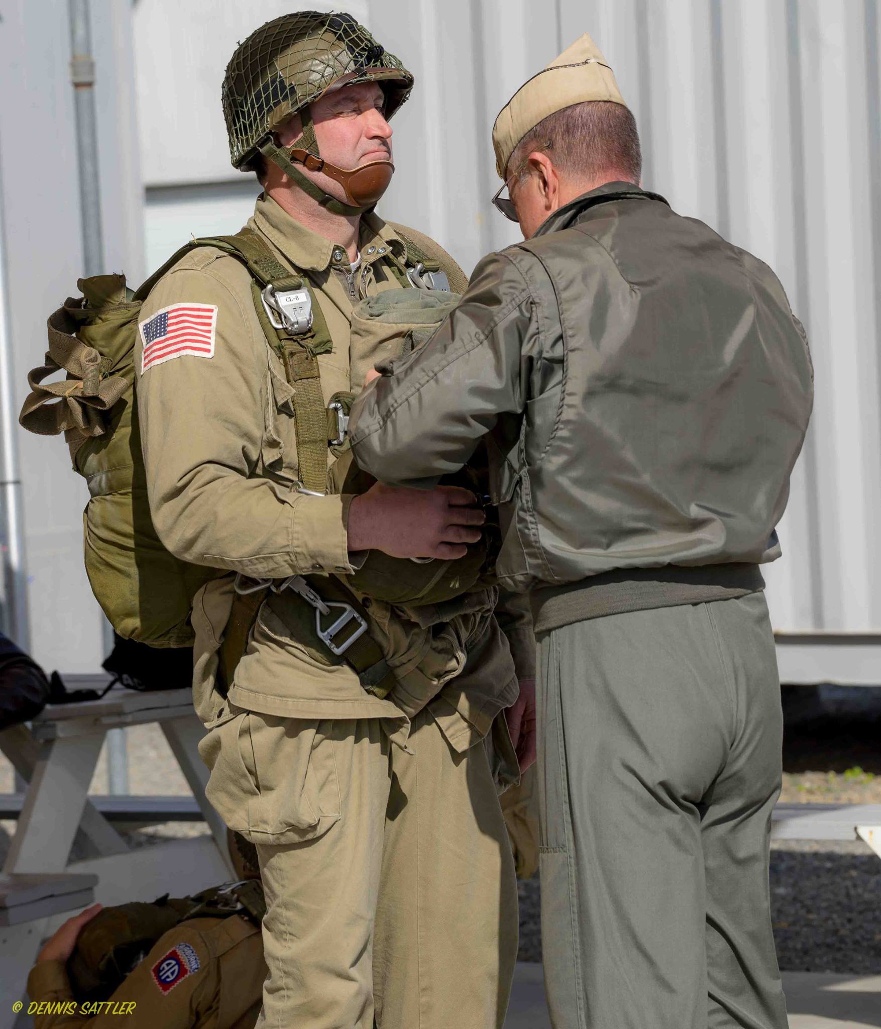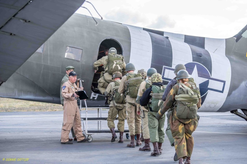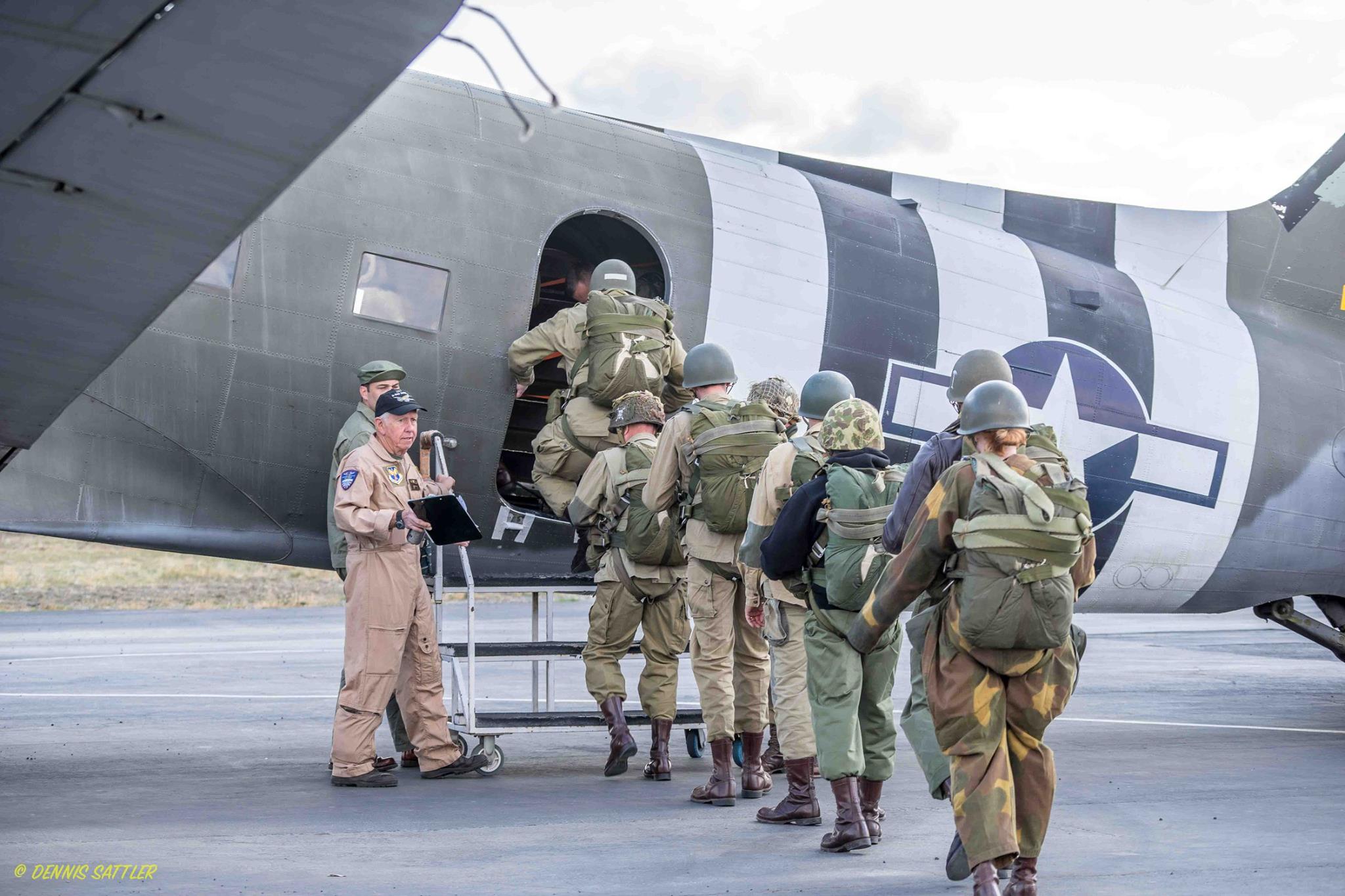 D-Day Doll is a C-53 “Sky Trooper” stationed and maintained with the Inland Empire Commemorative Air Force. The WWII Airborne Demonstration Team is headquartered in Frederick Oklahoma at Frederick Army Air Field (FAAF). Our team operates out of this Army Air Corps installation that was constructed in 1942. We have a hangar set up with barracks, mess hall, classrooms, rigger shops, offices and airborne training stations. In addition, we have a C-47 “Boogie Baby” and DC-3 “Wild Kat” we utilize for jump schools, training and shows. The mission of the WWII/ADT is to “Remember, Honor and Serve”. We keep the spirit of the WWII Paratroopers going along with working with several WWII Paratrooper Veterans.