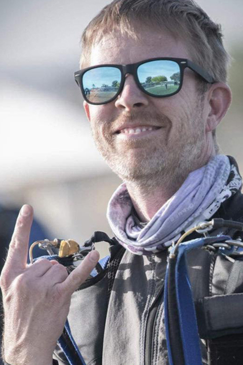 Ratings: USPA AFFI, Tandem Instructor, canopy coach, Advanced Paragliding instructor, Miniwing Instructor, and freefly organizer