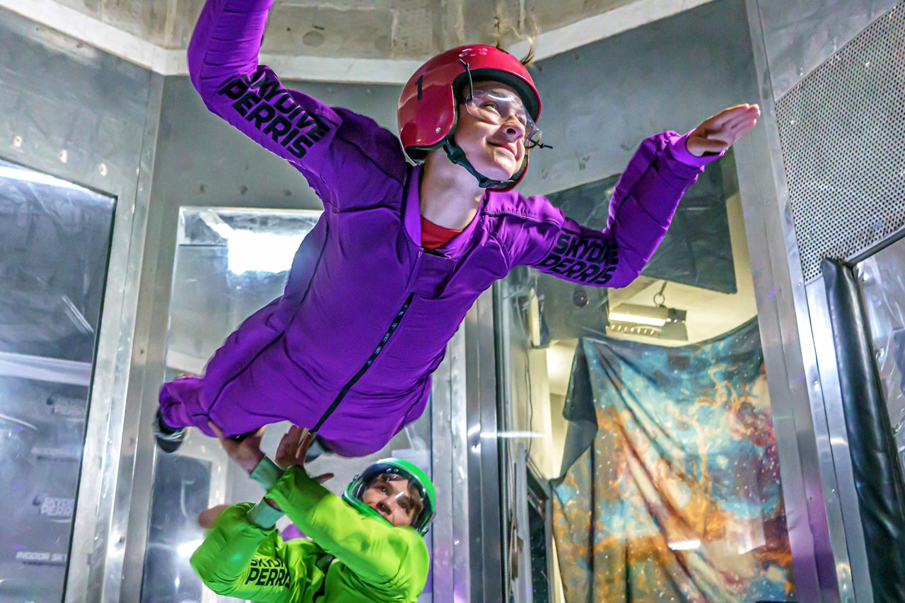 There’s something unique about taking off in an airplane, feeling the wheels shudder as you lift off, knowing soon you’ll be exiting the very same plane. As you watch the world grow smaller and smaller beneath you, you’ll feel butterflies of excitement and anticipation. On a skydive at Skydive Perris, you’ll travel to an awe-inspiring height of 13,500 feet. With indoor skydiving, you will enter into the flow of wind through a door located on the side of the chamber. For those that might not be ready for the thrill of exiting an airplane in flight roughly two miles above the ground, indoor skydiving is the perfect way to experience body flight.