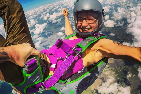 “It was awesome. I had so much fun,” she enthuses. “When I first started jumping, I didn’t care about progressing. I was just incredibly pumped. I got really, really good at having fun on skydives.”
