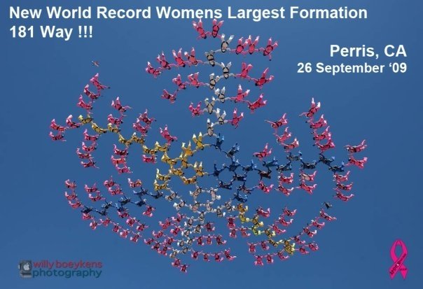 That’s a tough one as there are many different jumps I have pride in. I’d have to say the JFTC (Jump for the Cause) 181 way Women’s World Record, which still stands to this day. The combination of bringing so many fabulous strong women from around the world to unite in a single jump plus raising money through City of Hope for Breast Cancer research is a win-win.
